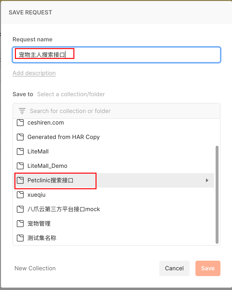 在 Postman 中,创建测试集,填写接口信息,通过调参和编写断言结果来测试搜索接口。
