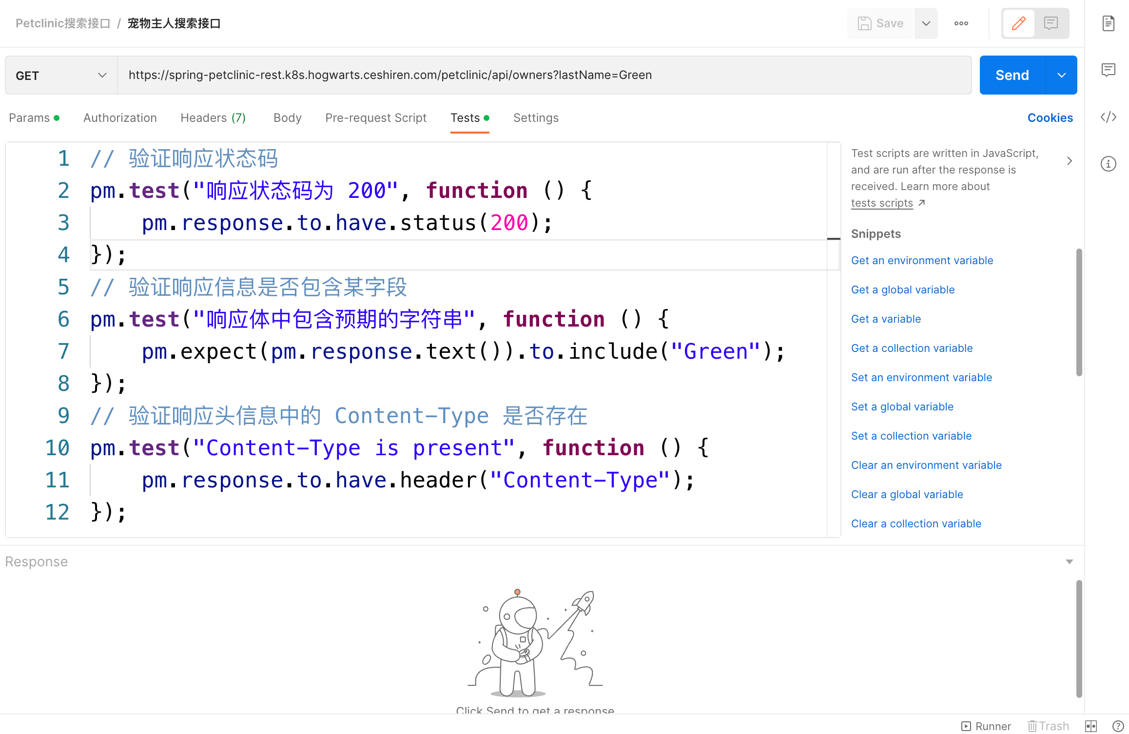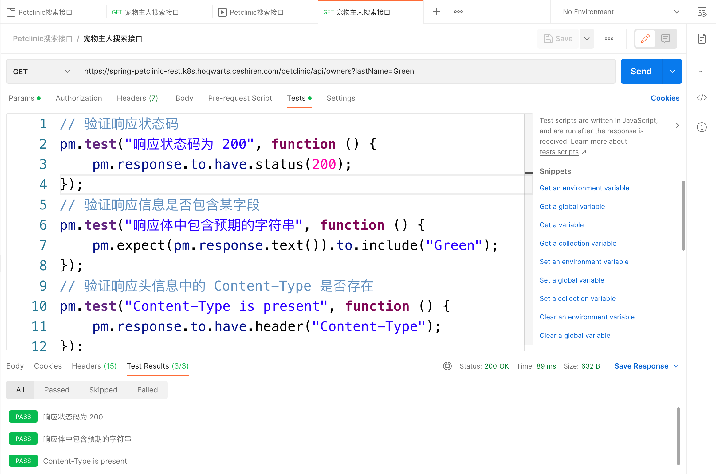 请求地址: https://spring-petclinic-rest.k8s.hogwarts.ceshiren.com/petclinic/api/owners?lastName=LASTNAME¶